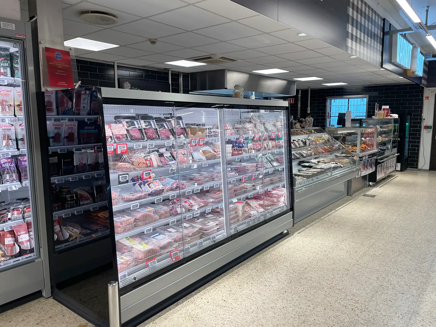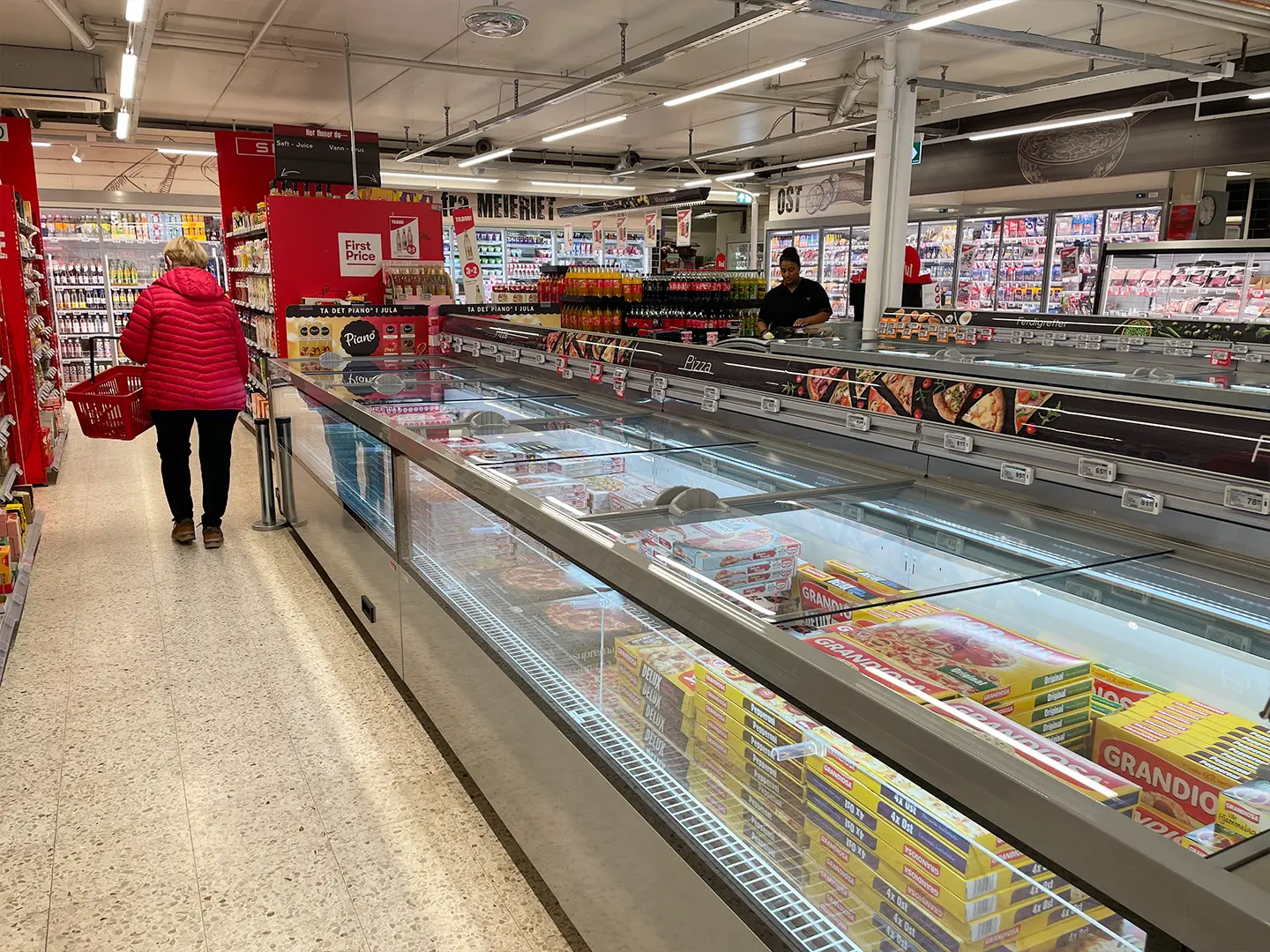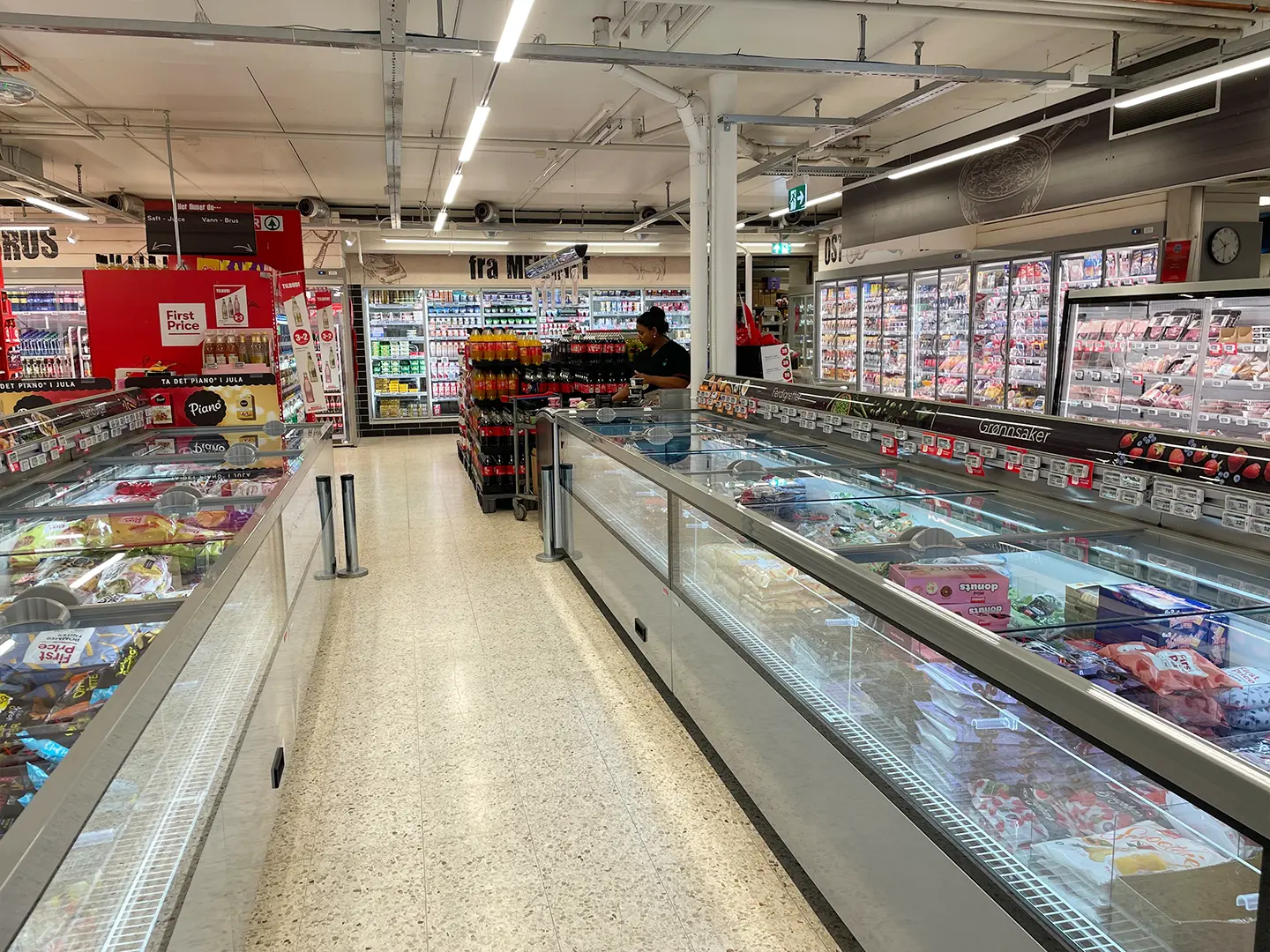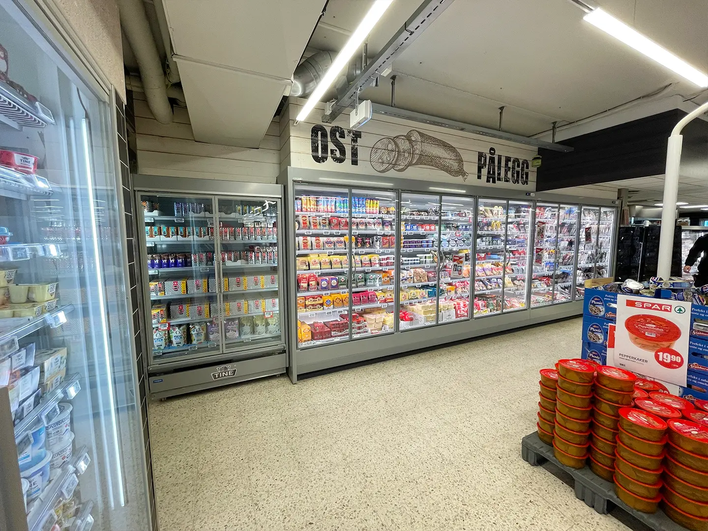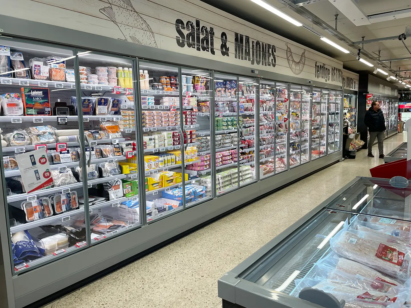 Alt kjøle- og fryseutstyr i butikken er byttet ut. Transparente dører og fronter med LED-lys har tatt over for gamle disker med gulfarget lys.